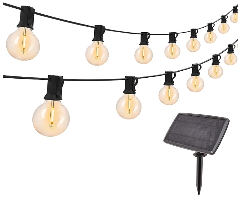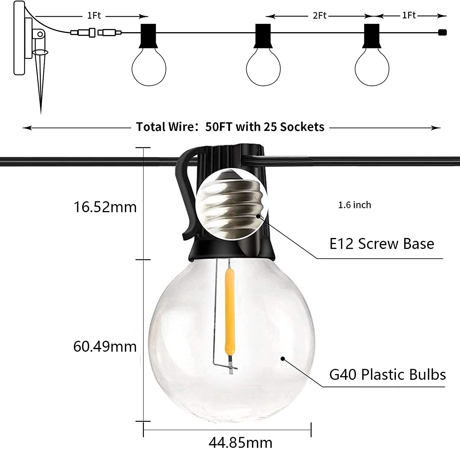 G40 Solar String Lights Outdoor 48Ft Patio Lights with 15 Shatterproof LED Bulbs, Solar & USB Charging with 4 Lighting Modes, Heavy Duty Weatherproof Strand for Backyard Garden